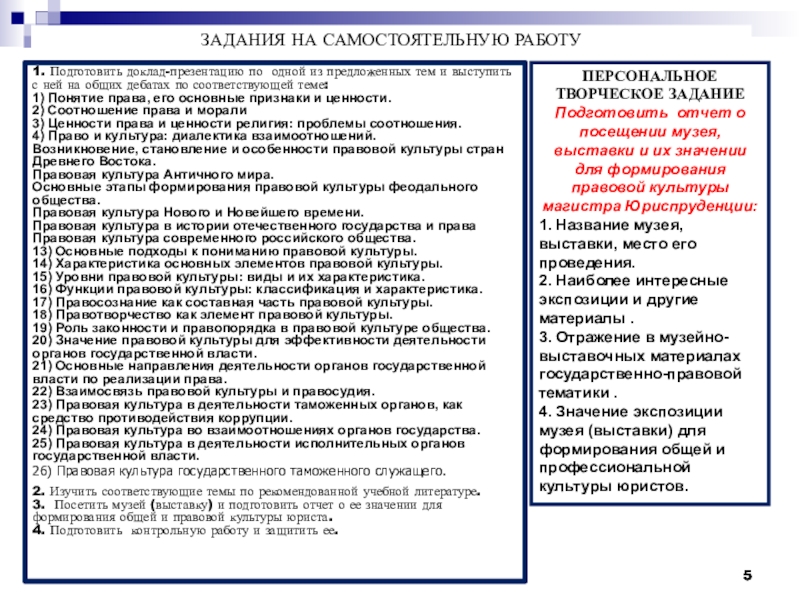 Слайд 5ЗАДАНИЯ НА САМОСТОЯТЕЛЬНУЮ РАБОТУ
