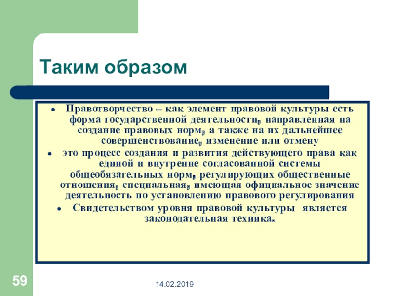 Правотворчество – как элемент правовой культуры есть форма государственной