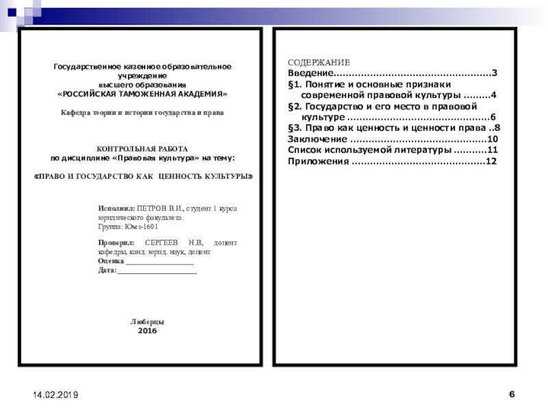 §2. Государство и его место в правовой культуре ………………………………..………6