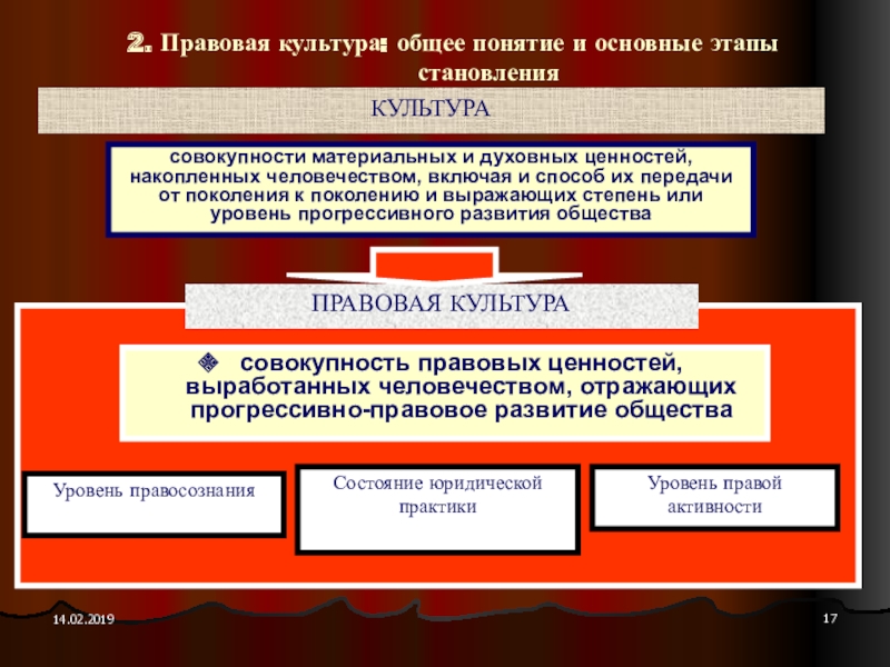 культуры, качественное состояние правовой жизни, которое выражается в уровне развития