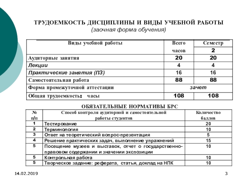 Слайд 3ТРУДОЕМКОСТЬ ДИСЦИПЛИНЫ И ВИДЫ УЧЕБНОЙ РАБОТЫ