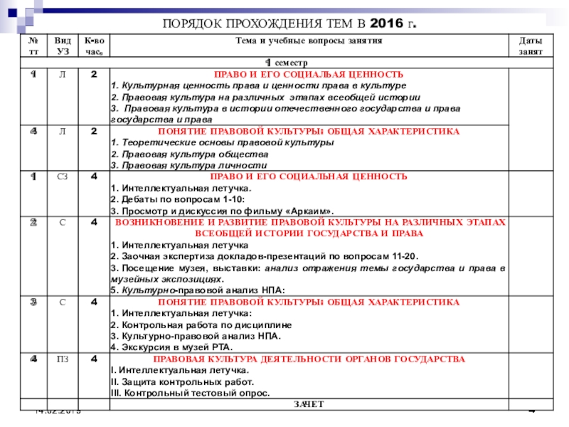 Слайд 4ПОРЯДОК ПРОХОЖДЕНИЯ ТЕМ В 2016 г.