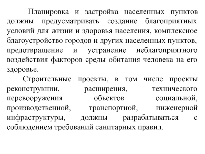 Слайд 48 Планировка и застройка населенных пунктов должны предусматривать создание