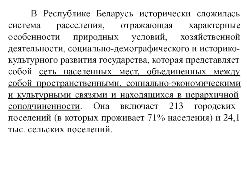 Слайд 10 В Республике Беларусь исторически сложилась система расселения, отражающая