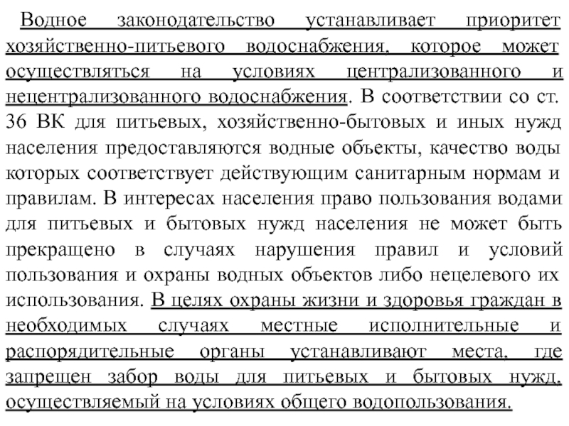 условиях централизованного и нецентрализованного водоснабжения. В соответствии со ст. 36
