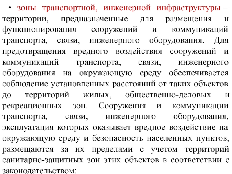 Слайд 39• зоны транспортной, инженерной инфраструктуры – территории, предназначенные для размещения и