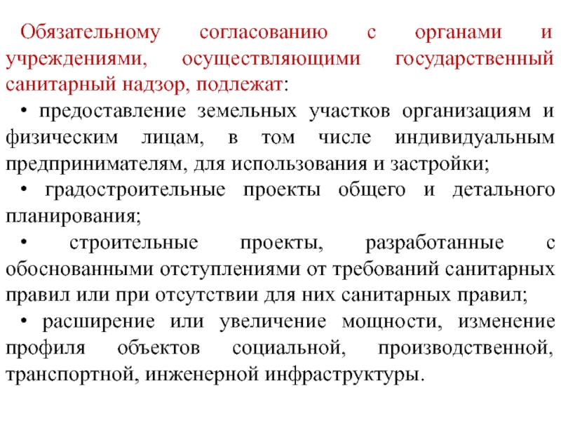 Слайд 49Обязательному согласованию с органами и учреждениями, осуществляющими государственный санитарный надзор,