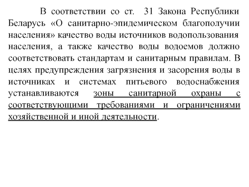 Республики Беларусь «О санитарно-эпидемическом благополучии населения» качество воды источников водопользования