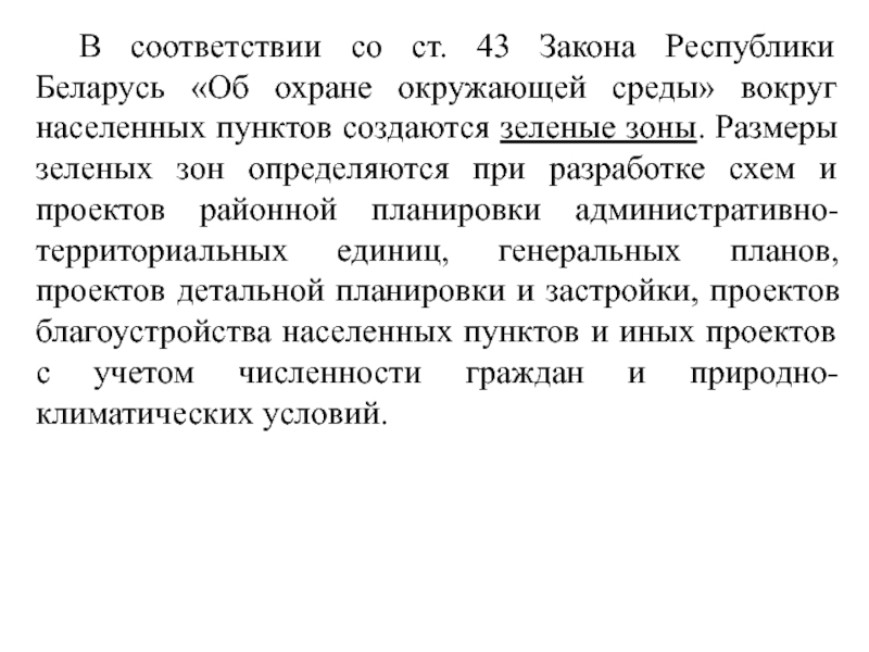 Слайд 64В соответствии с Законом Республики Беларусь «О растительном мире» градостроительное
