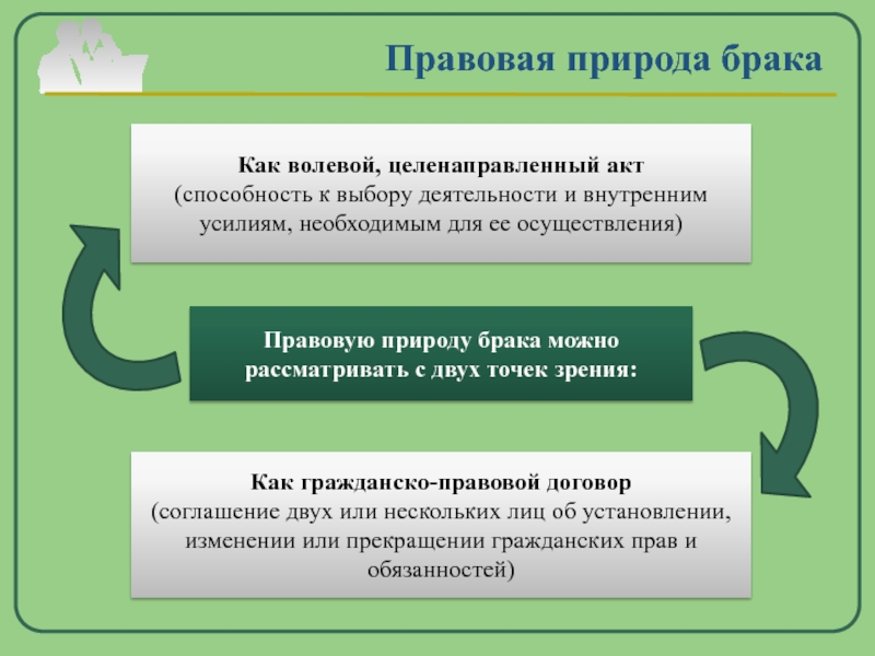 Company Logowww.themegallery.comПравовая природа бракаПравовую природу брака можно рассматривать с двух точек зрения: Как волевой, целенаправленный акт (способность