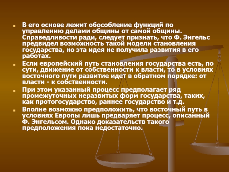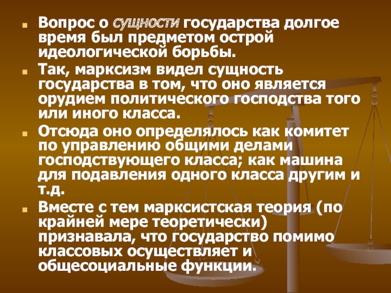 Поэтому государство становится как бы надклассовым. Оно балансирует над классами, используя их борьбу в своих интересах, не будучи непосредственно орудием ни одного из них.