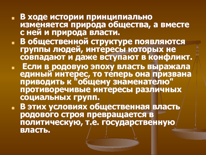 Будучи атрибутом общества, власть изменяется вместе с изменением его природы.