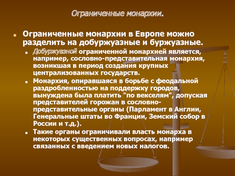 Какие виды и особенности ограниченных монархий Вы знаете?