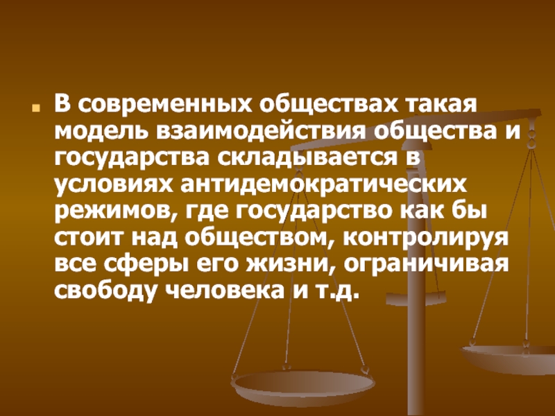 В современных обществах такая модель взаимодействия общества и государства складывается