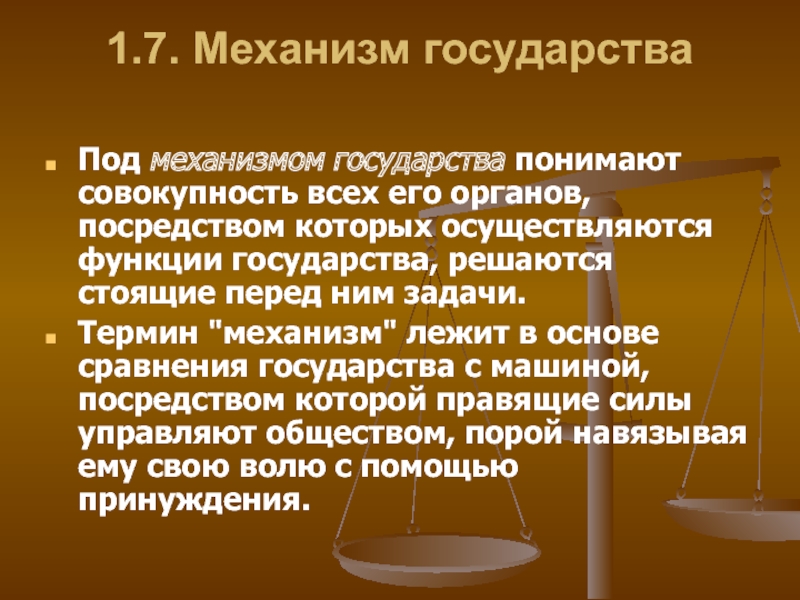 Поэтому она включает средства и механизмы осуществления принуждения, которое может быть как физическим, так и психическим.