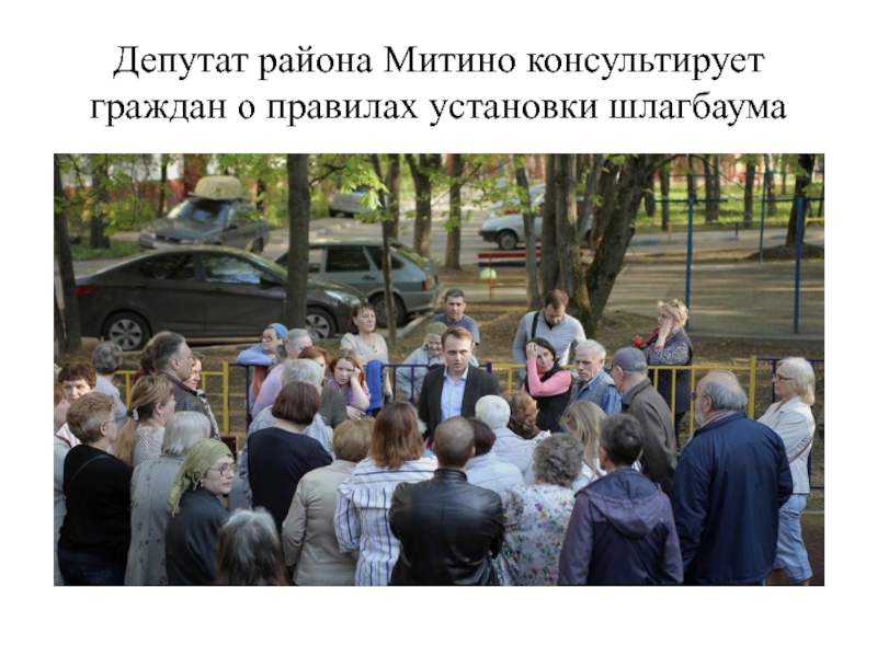 Слайд 31Депутат района Митино консультирует граждан о правилах установки шлагбаума