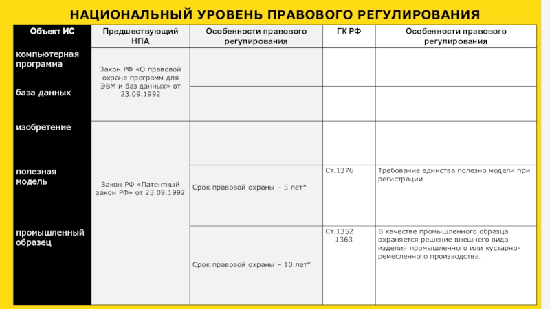 Регламентация охраны результатов творческой деятельности (интеллектуальной собственности)