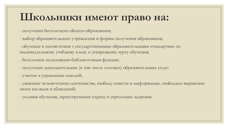 Слайд 12Школьники имеют право на: