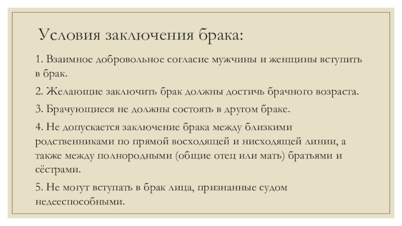 Слайд 3Условия заключения брака: