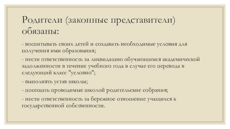 Слайд 16Родители (законные представители) обязаны: