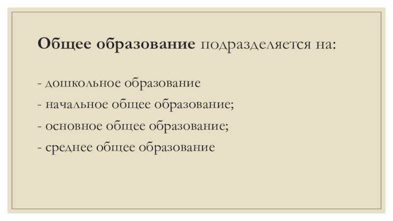 Слайд 6Общее образование подразделяется на: