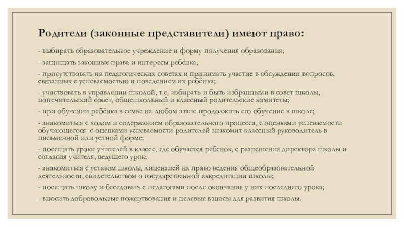 Слайд 15Родители (законные представители) имеют право:
