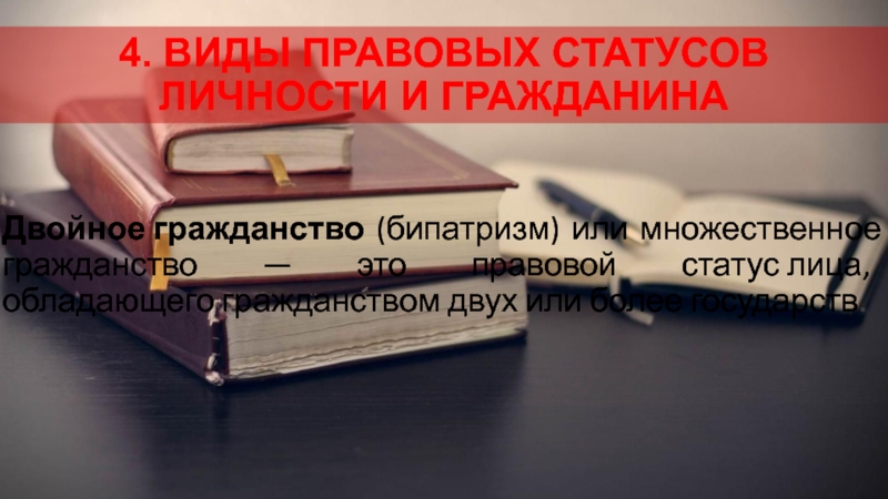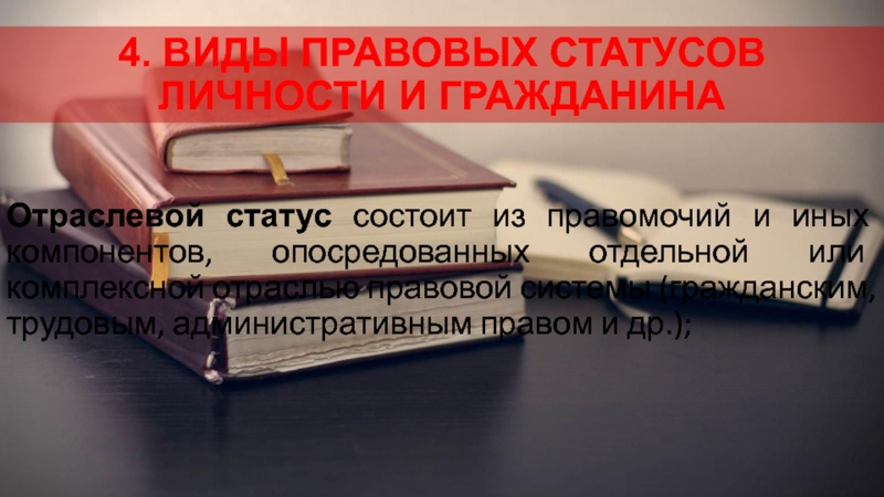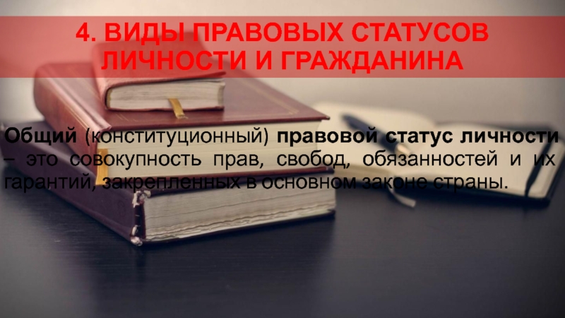Слайд 21. ПОНЯТИЕ ПРАВОВОГО СТАТУСА ЛИЧНОСТИ