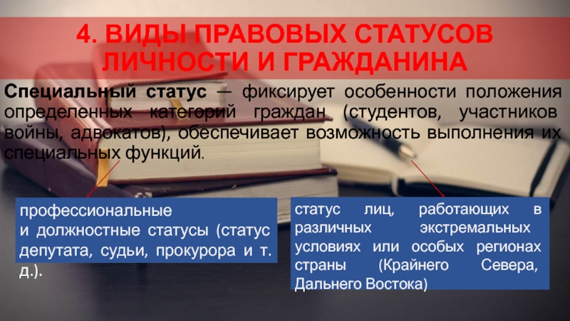 и должностные статусы (статус депутата, судьи, прокурора и т.д.).