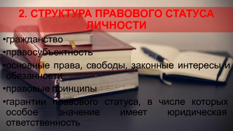Слайд 32. СТРУКТУРА ПРАВОВОГО СТАТУСА ЛИЧНОСТИ