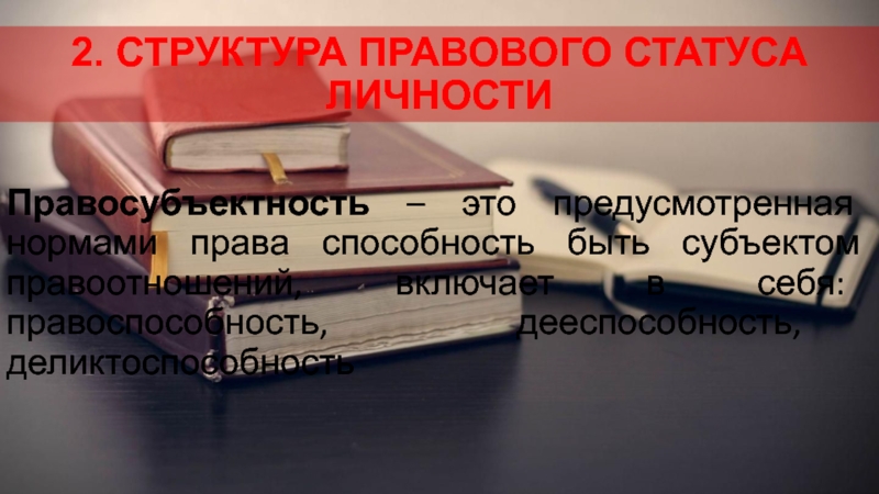 Слайд 42. СТРУКТУРА ПРАВОВОГО СТАТУСА ЛИЧНОСТИ
