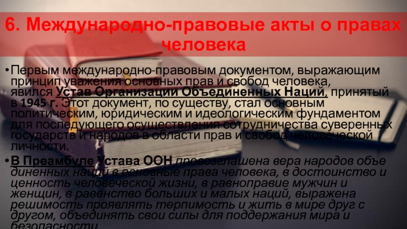 в 1945 г. Этот документ, по существу, стал основным политическим, юридическим и идеологическим фундаментом для последующего осуществления сотрудничества суверенных государств и народов в области прав и свобод человеческой личности.