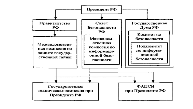 Общее руководство системой информационной безопасности, наряду с другими вопросами государственной безопасности страны, осуществляют Президент и Правительство Российской Федерации.