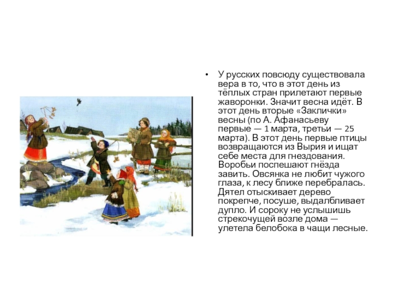 Слайд 4Со́роки, Жа́воронки — славянский народный праздник, приуроченный к церковному дню памяти