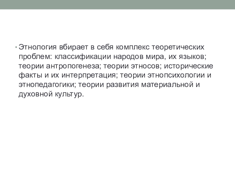 Слайд 6Этнология вбирает в себя комплекс теоретических проблем: классификации народов мира,