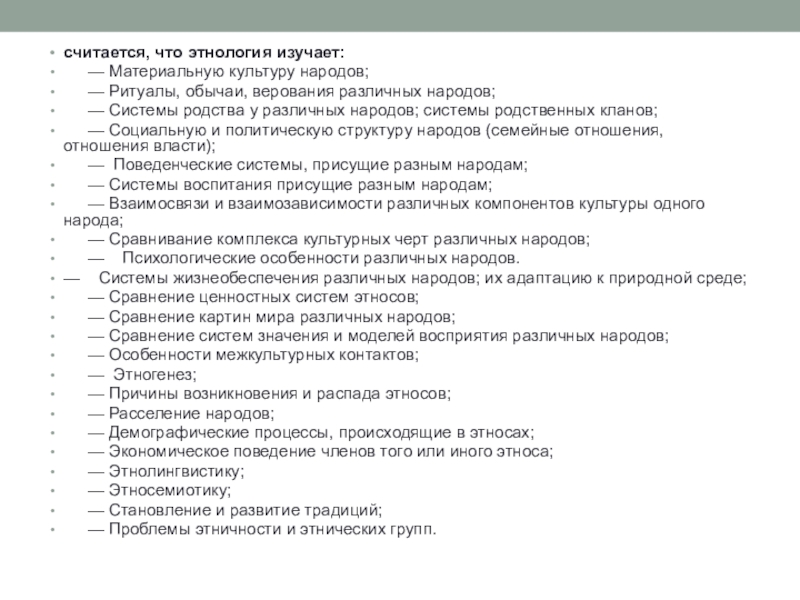 Слайд 9считается, что этнология изучает:
