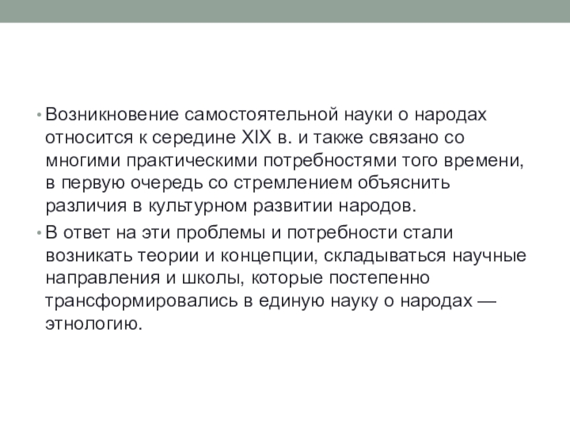 Слайд 11Возникновение самостоятельной науки о народах относится к середине XIX в.