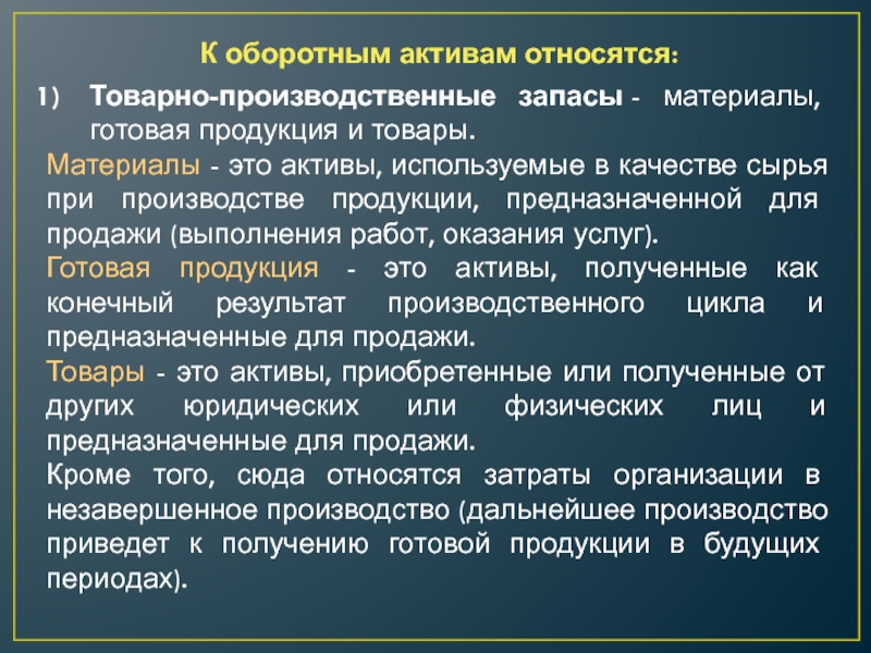 Слайд 8К оборотным активам относятся: