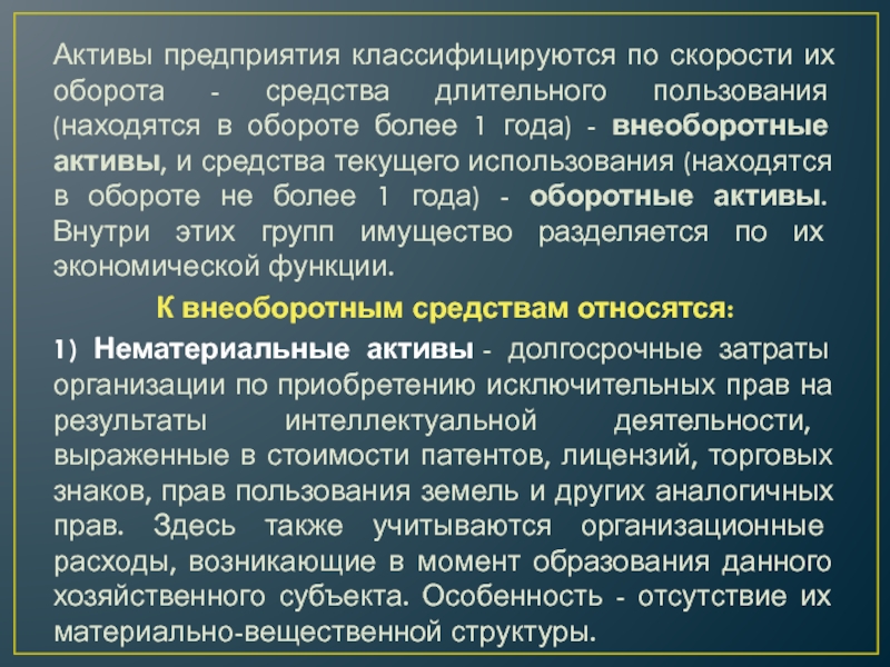 Слайд 5Активы предприятия классифицируются по скорости их оборота - средства длительного