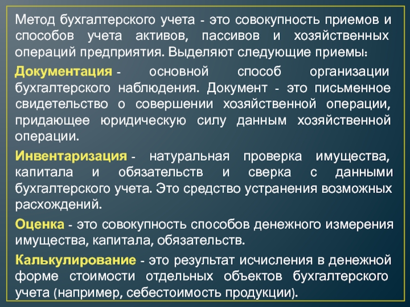 Слайд 18Метод бухгалтерского учета - это совокупность приемов и способов учета
