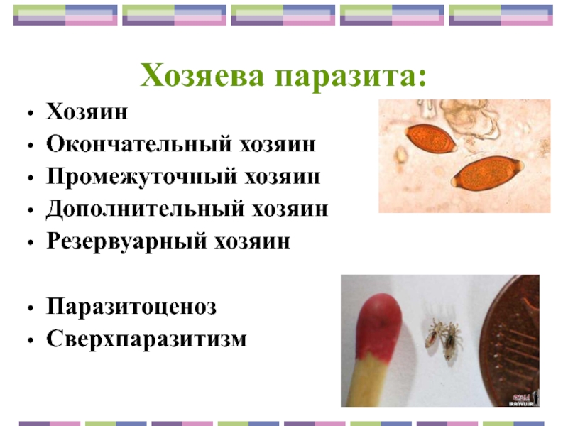 Паразитизм – форма сожительства двух генетически чужеродных организмов, при котором организм паразит использует другой организм – хозяина, в качестве среды обитания, местом питания и наносит вред организму хозяина.
