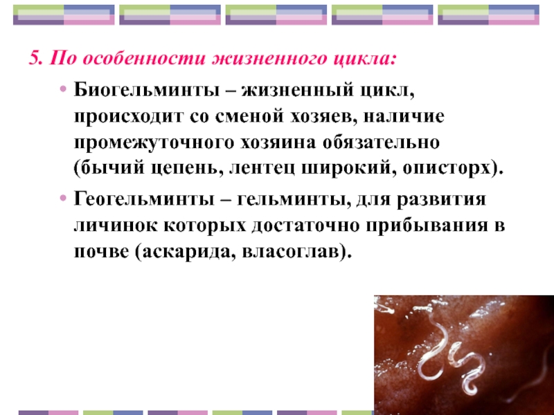 сменой хозяев, наличие промежуточного хозяина обязательно (бычий цепень, лентец широкий,