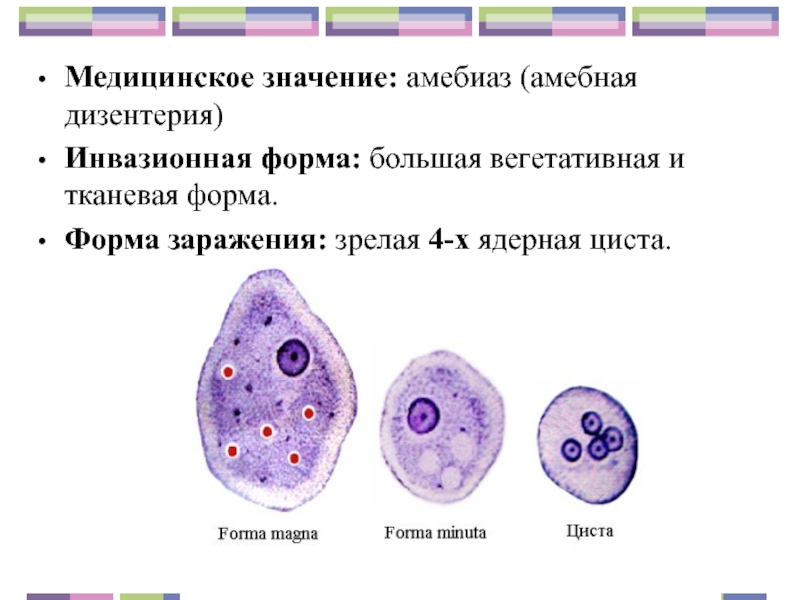 Слайд 13Медицинское значение: амебиаз (амебная дизентерия)