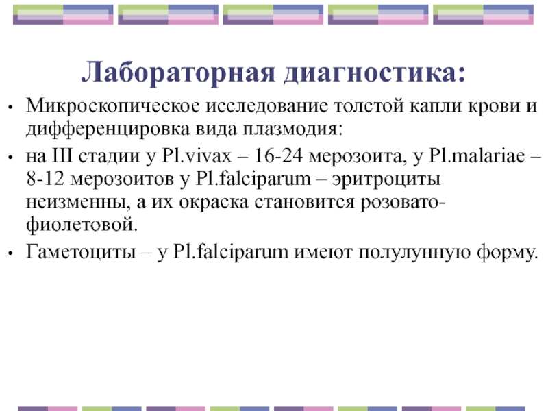 Микроскопическое исследование толстой капли крови и дифференцировка вида плазмодия: