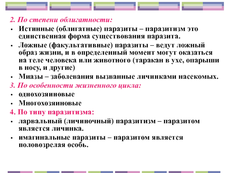 Истинные (облигатные) паразиты – паразитизм это единственная