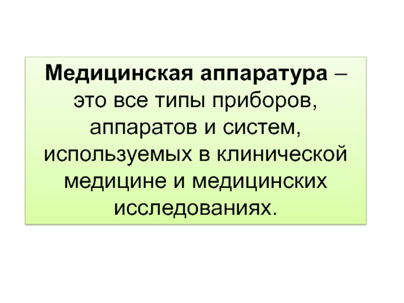 Медицинский прибор – это техническое устройство предназначенное для диагностических или лечебных измерений (электрокардиограф, сфигмоманометр, томограф и др.)
