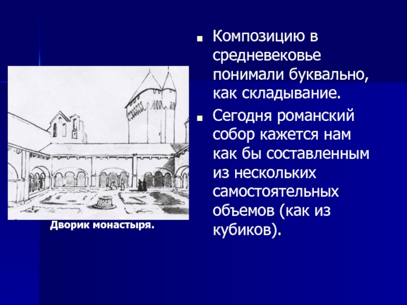 Слайд 9Композицию в средневековье понимали буквально, как складывание.