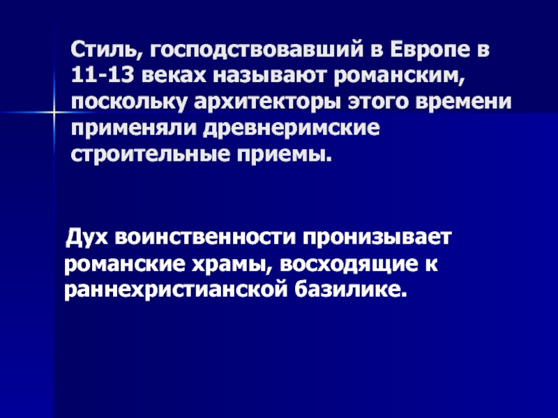 Слайд 5Стиль, господствовавший в Европе в 11-13 веках называют романским, поскольку