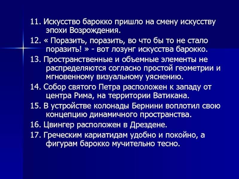 Слайд 4511. Искусство барокко пришло на смену искусству эпохи Возрождения.