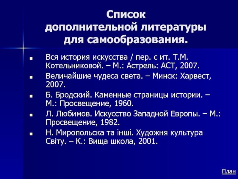 Л. Любимов. Искусство Западной Европы. – М.: Просвещение, 1982.