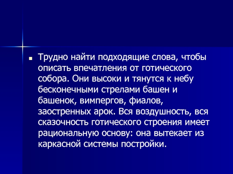Слайд 14Трудно найти подходящие слова, чтобы описать впечатления от готического собора.